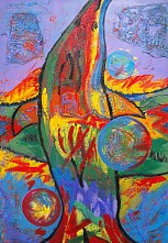 Een globale impressie van het schilderij "Dolfijn" 70x100cm.