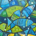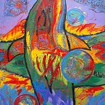 Een globale impressie van het schilderij "Zonder titel ( 4 )" 70x100cm.