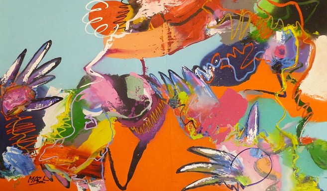 Acryl / mixed op los doek - abstract expressief - kleurrijk