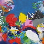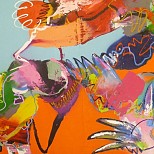 Acryl / mixed op linnen - abstract expressief werk - inclusief baklijst - kleurrijk