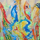 Acryl op katoen.