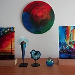 Een globale impressie van het schilderij "Red Velvet" 70x70cm.