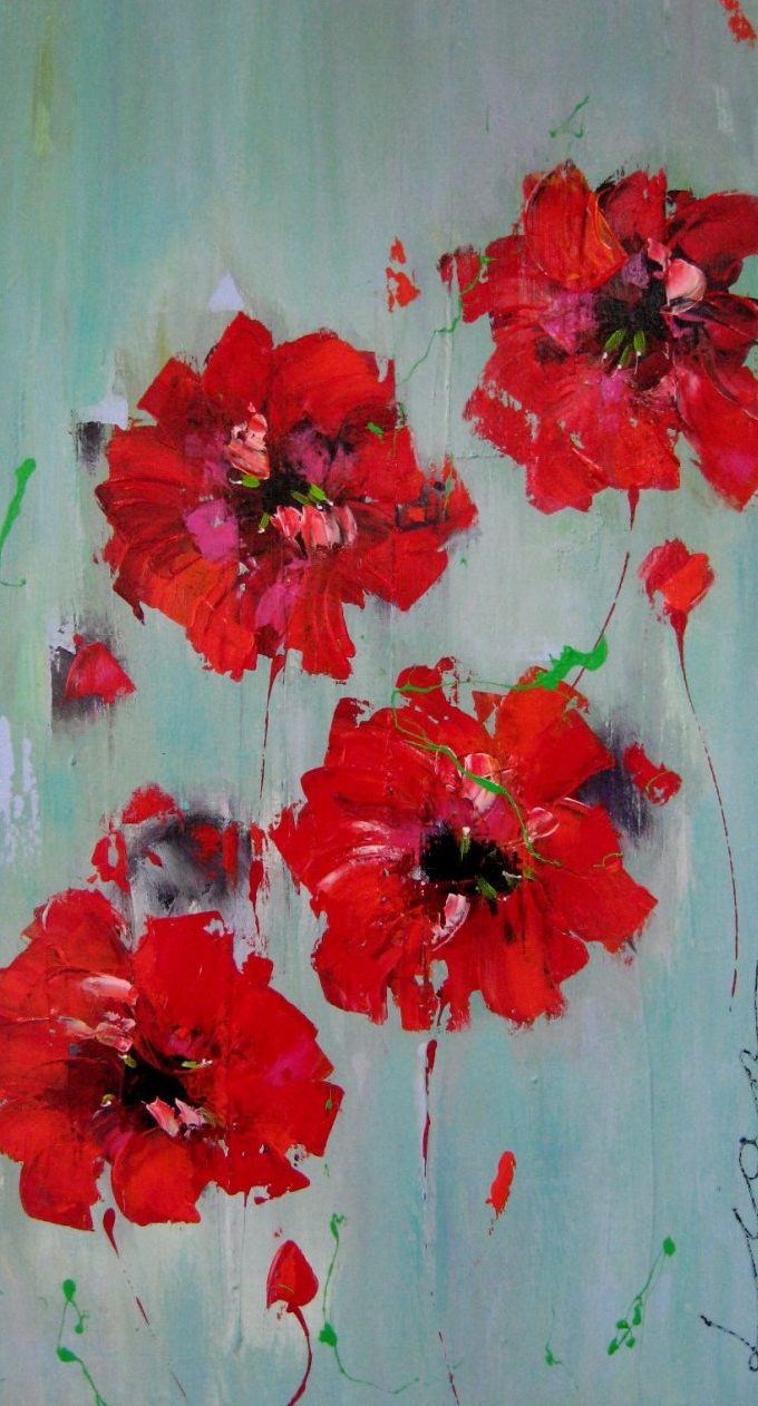 Een globale impressie van het schilderij "Flower power" 40x80cm.