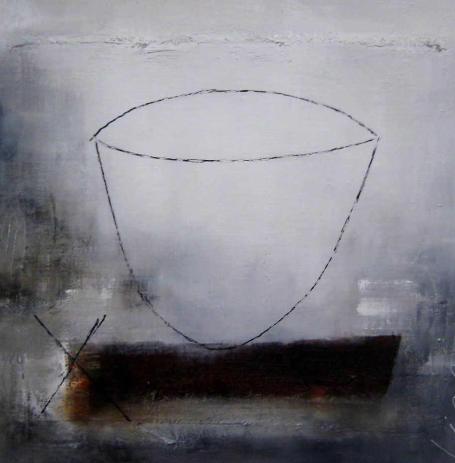 Een globale impressie van het schilderij "Potery" 70x70cm.