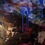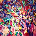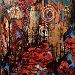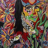Een globale impressie van het schilderij "Happy Dog" 50x50cm.