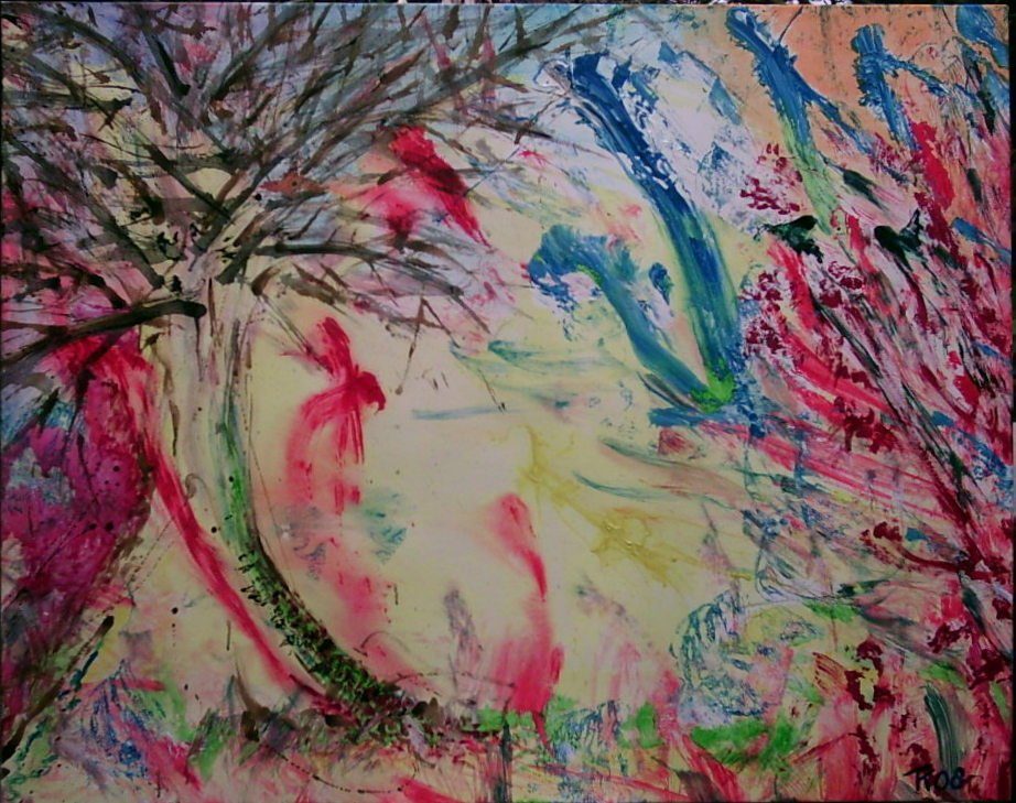 Een globale impressie van het schilderij "Knotwilgen" 150x120cm.