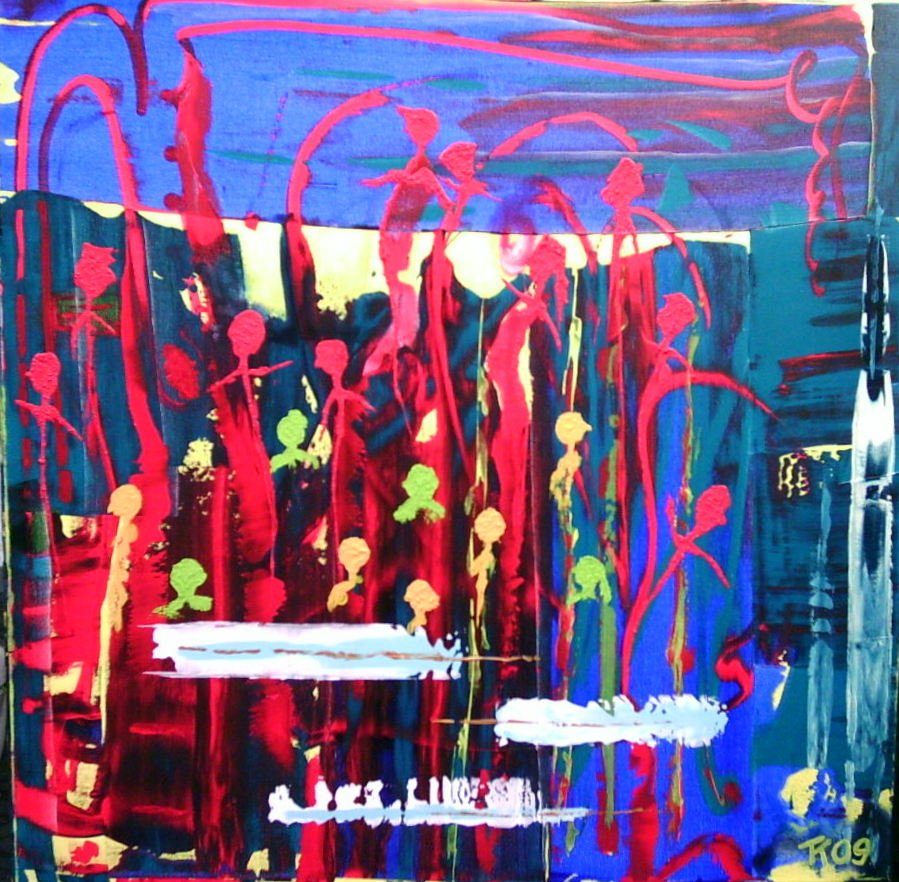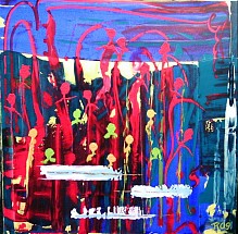 Een globale impressie van het schilderij "Opera" 100x100cm.