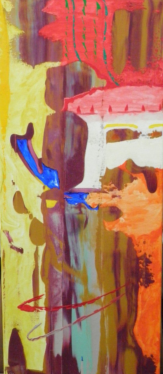 Een globale impressie van het schilderij "Discussie" 40x100cm.