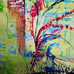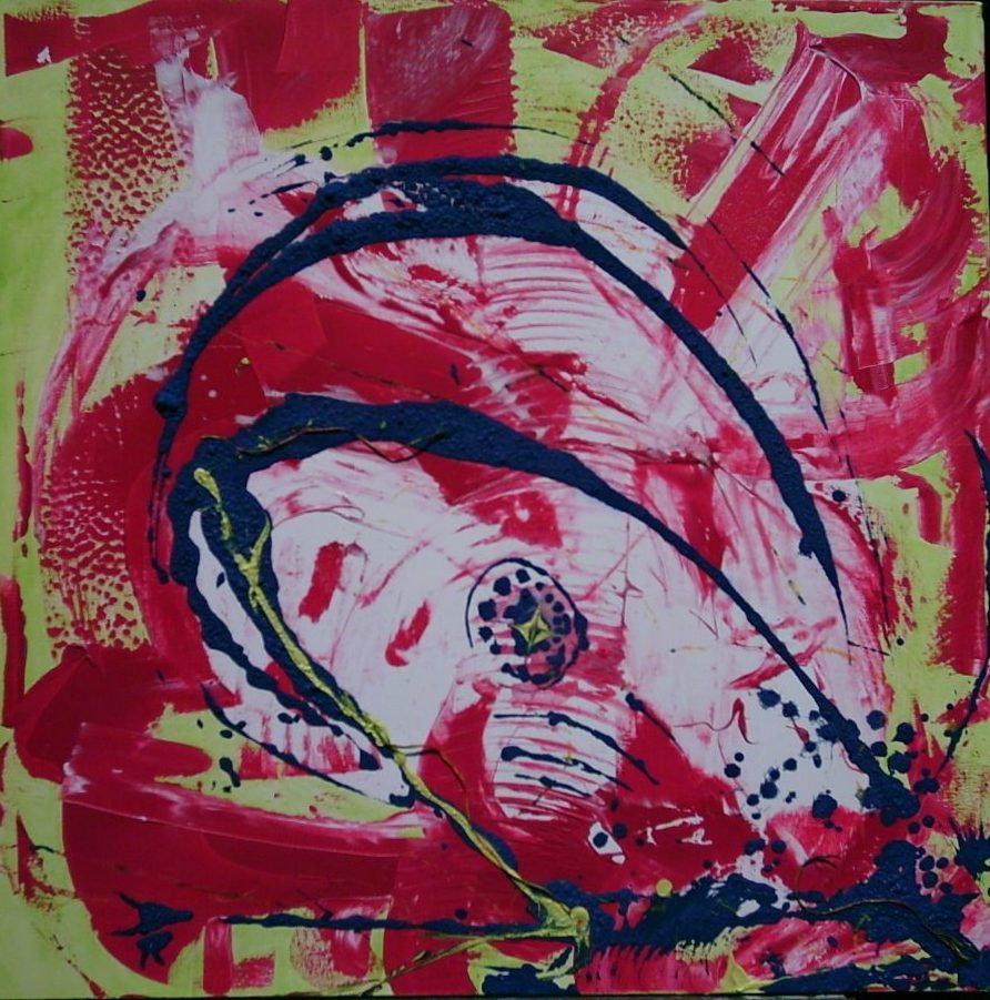 Een globale impressie van het schilderij "Verstrengeld" 100x100cm.