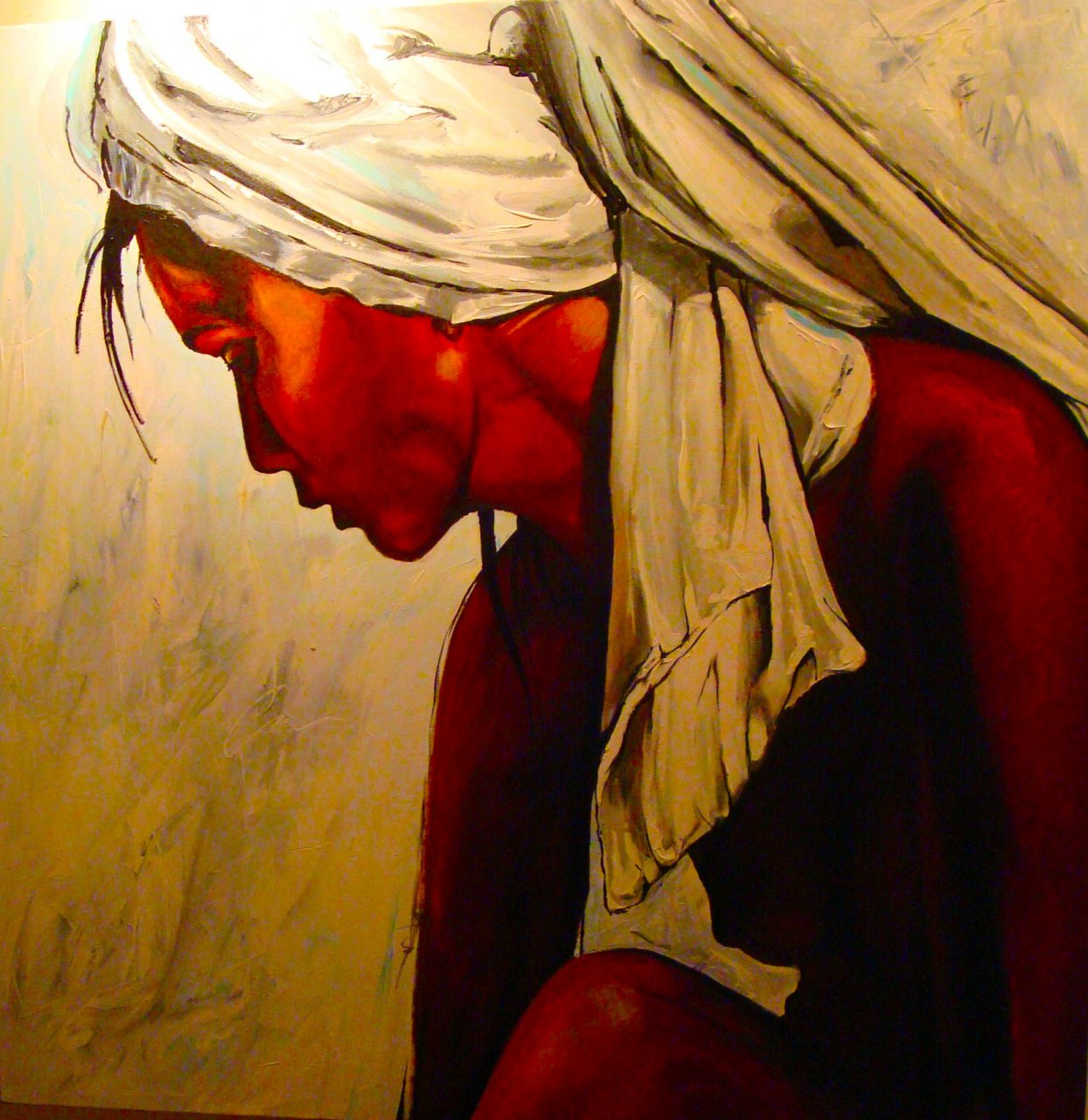 Een globale impressie van het schilderij "Amorada" 100x100cm.