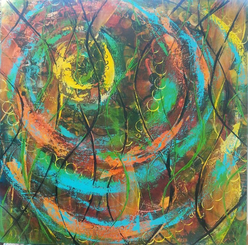 Een globale impressie van het schilderij "Whirlwind" 80x80cm.