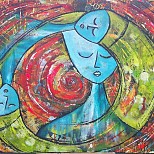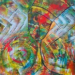 Een globale impressie van het schilderij "Faces" 60x60cm.