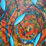 Intuïtief schilderij, acryl en inkt op doek