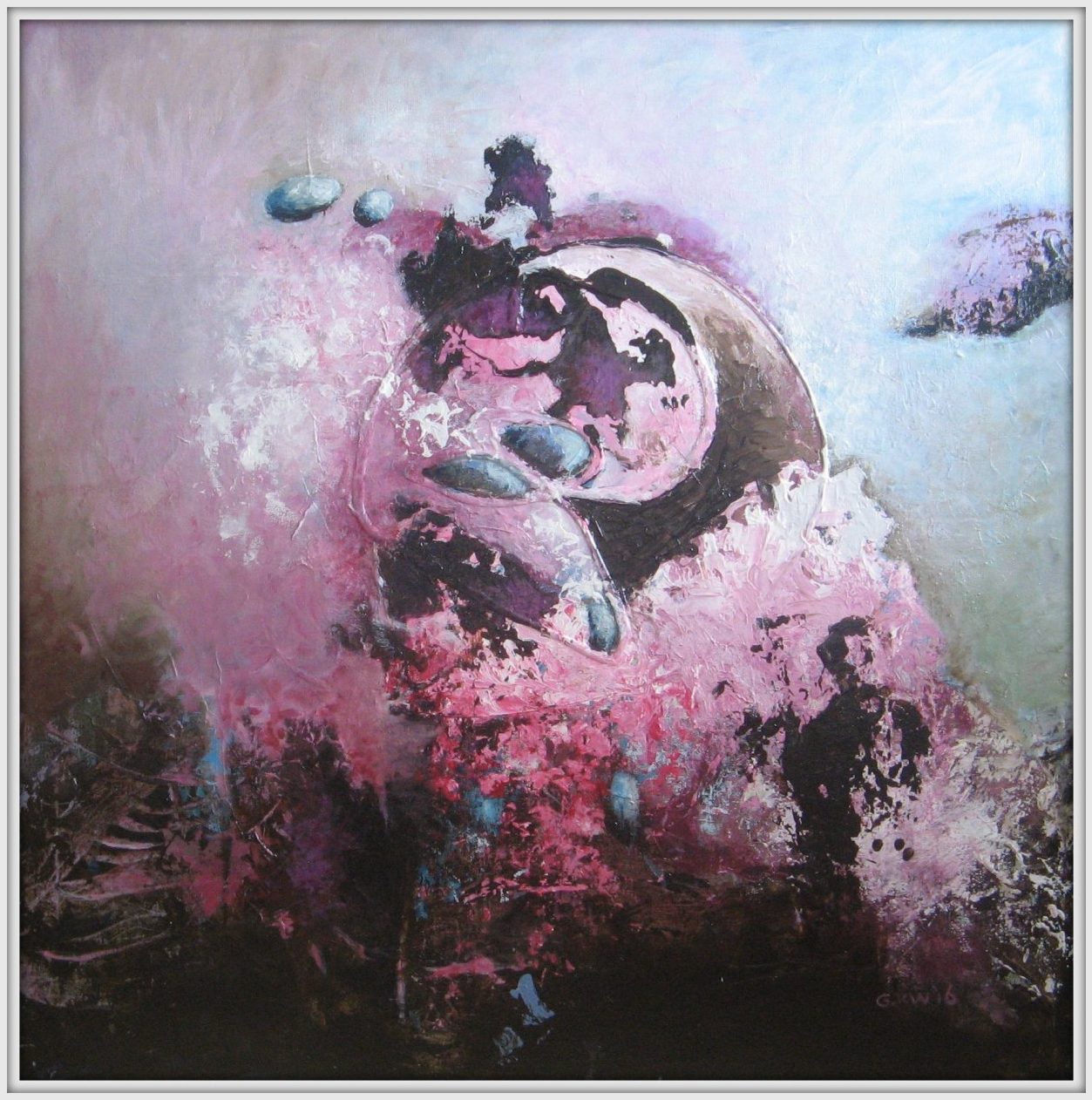 Een globale impressie van het schilderij "Zonder titel" 80x80cm.