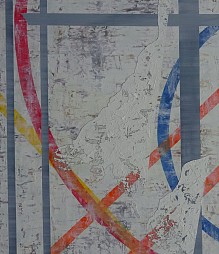 Een globale impressie van het schilderij "PLAYGROUND nr. 1" 100x115cm.