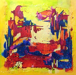Een globale impressie van het schilderij "Communication 2" 120x120cm.