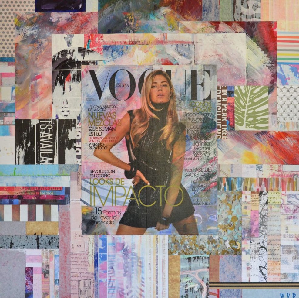 Een globale impressie van het schilderij "Vogue Doutzen" 90x90cm.