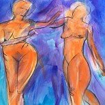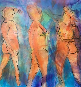 Een globale impressie van het schilderij "Drie gratien" 150x150cm.