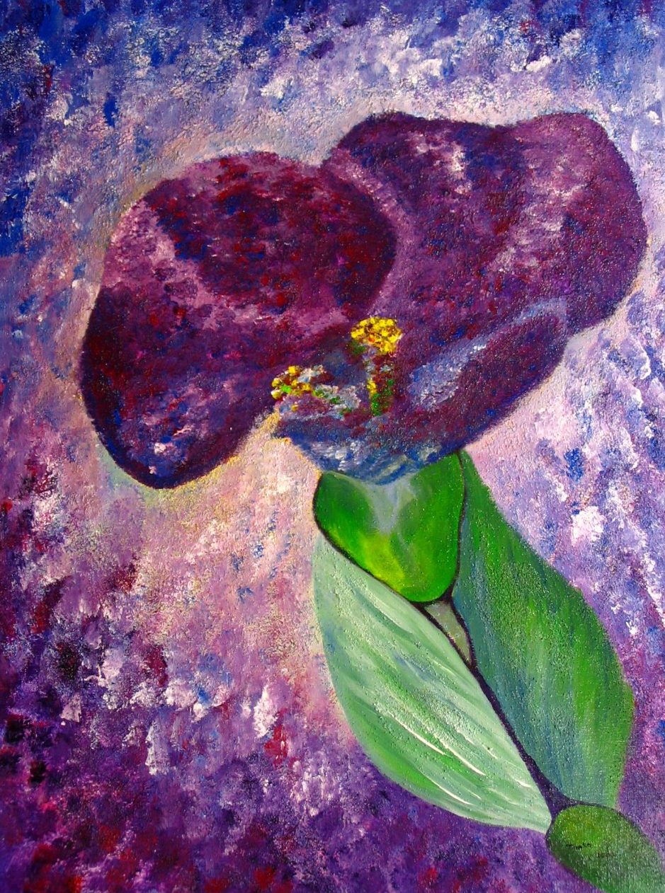 Een globale impressie van het schilderij "Het ontwaken van Yoni" 60x80cm.