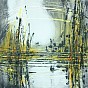 Een globale impressie van het schilderij "Silvery moon over Golden Lake" 40x40cm.