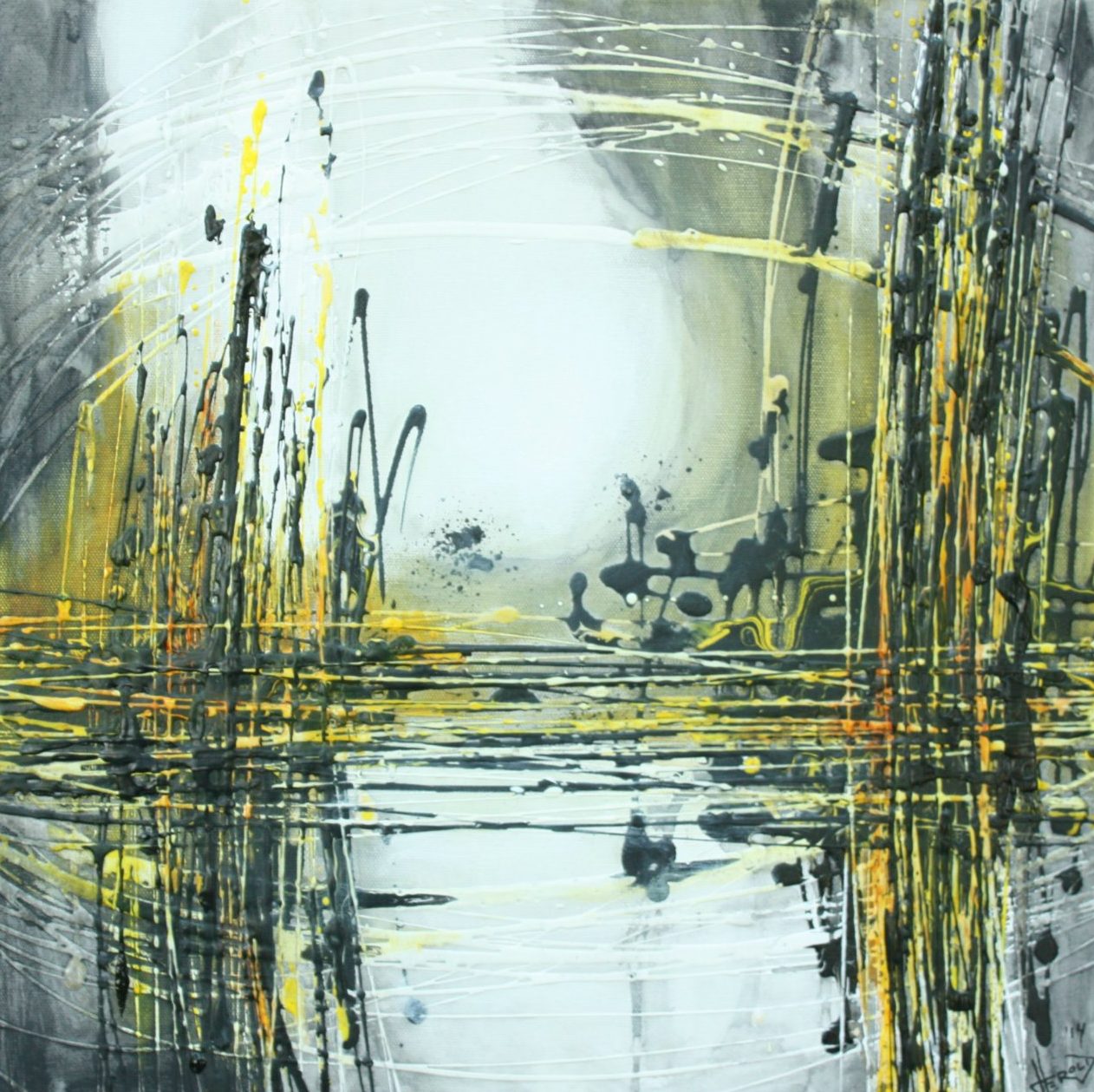 Acryl inkt, verf en pouring medium op canvas
