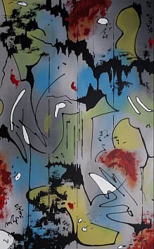 Een globale impressie van het schilderij "Lukewarm fluid" 100x160cm.