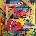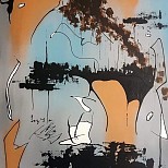 Een globale impressie van het schilderij "Evolution" 160x100cm.