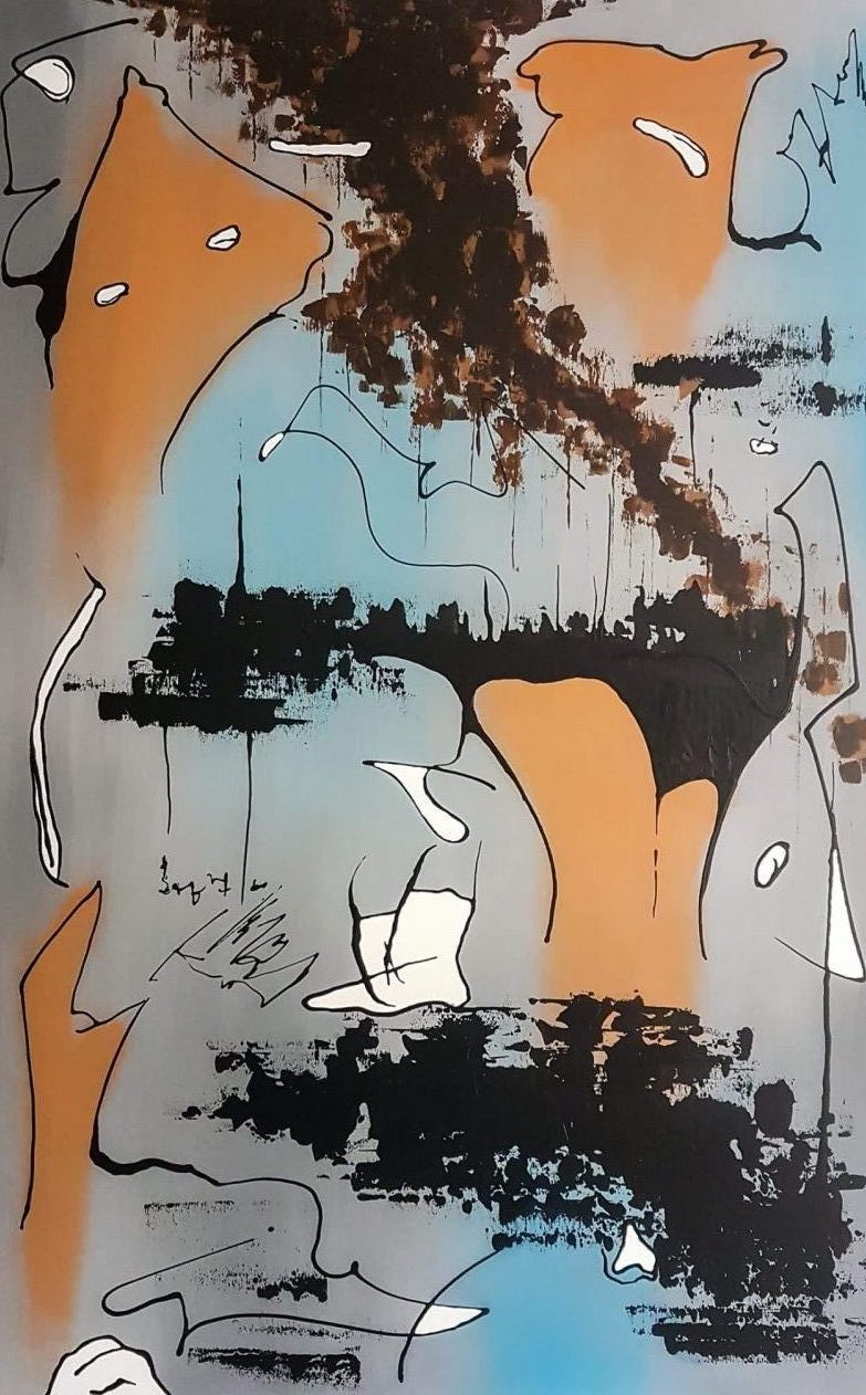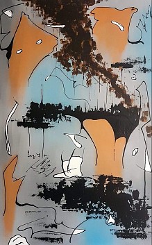 Een globale impressie van het schilderij "Drifting Away" 100x160cm.