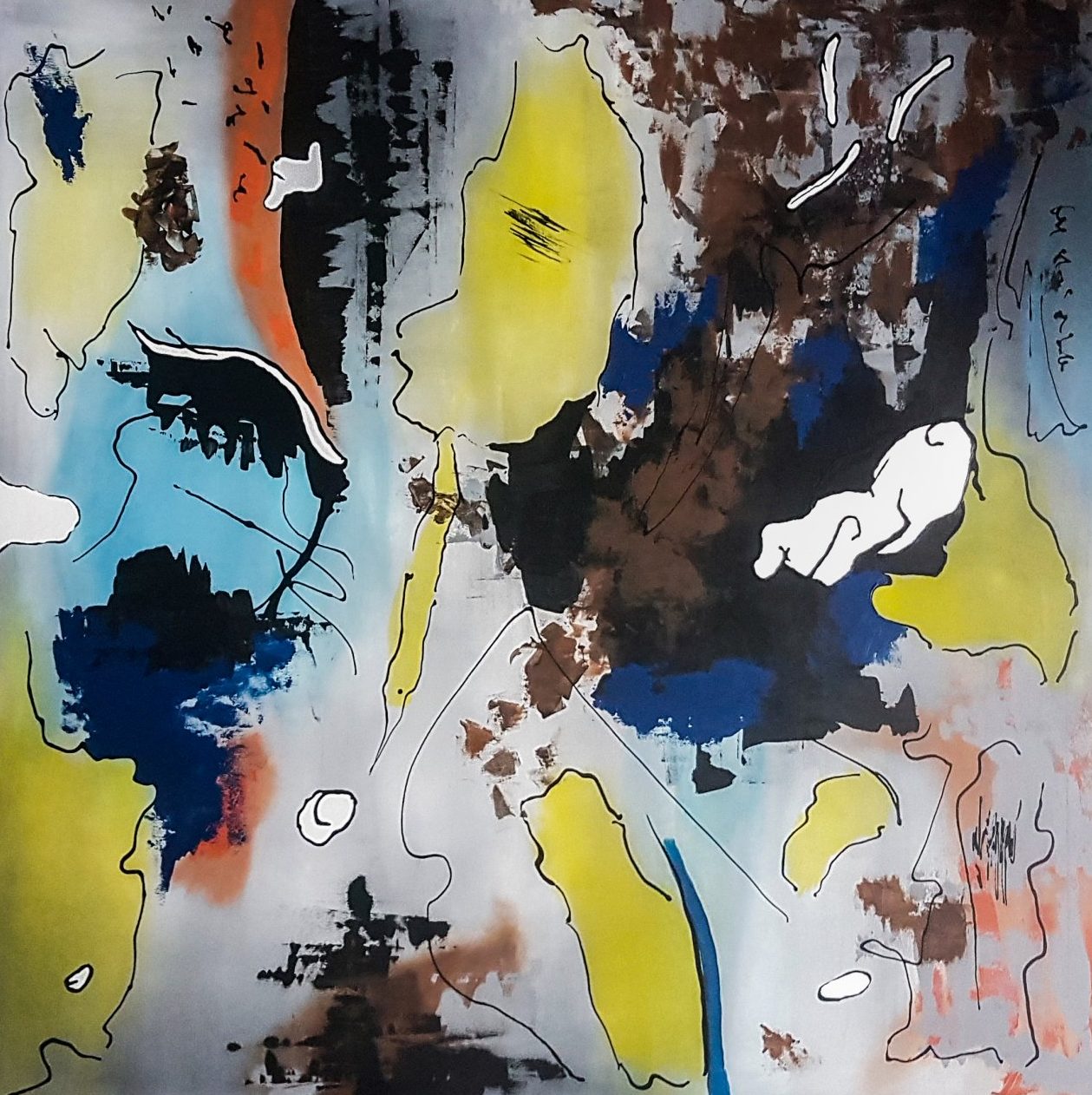 Traffic Mind is a modern abstract painting in a big format on canvas. Traffic mind is a painting from the serial Fiction elements.