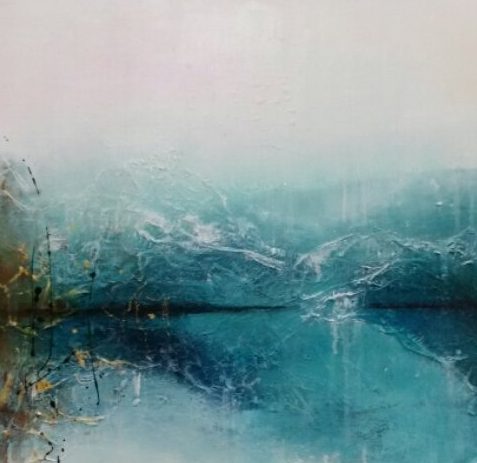 Een globale impressie van het schilderij "No river too deep" 70x70cm.