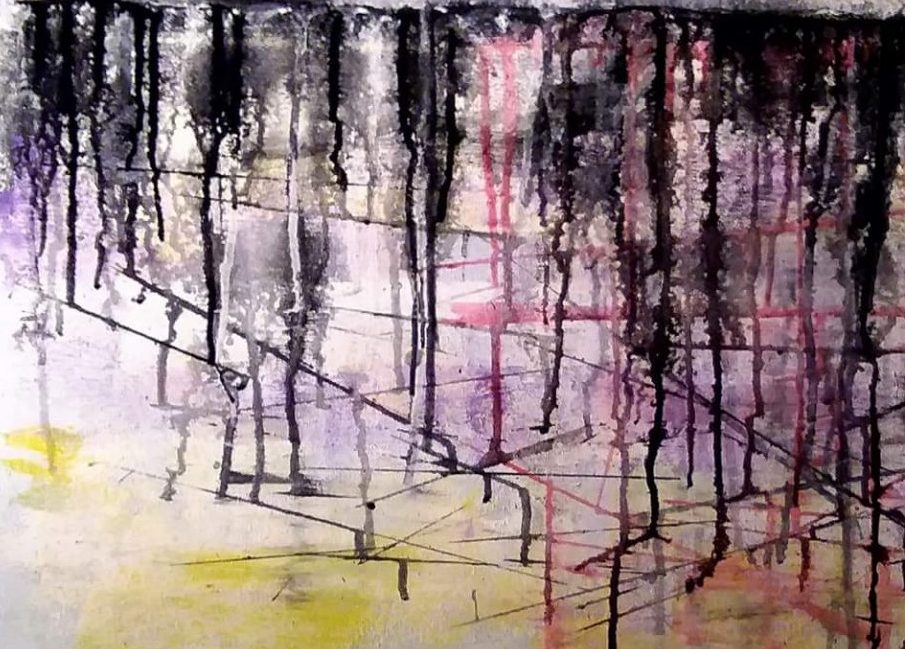 Weerspiegeling in het water. Acryl en Acryl Inkt