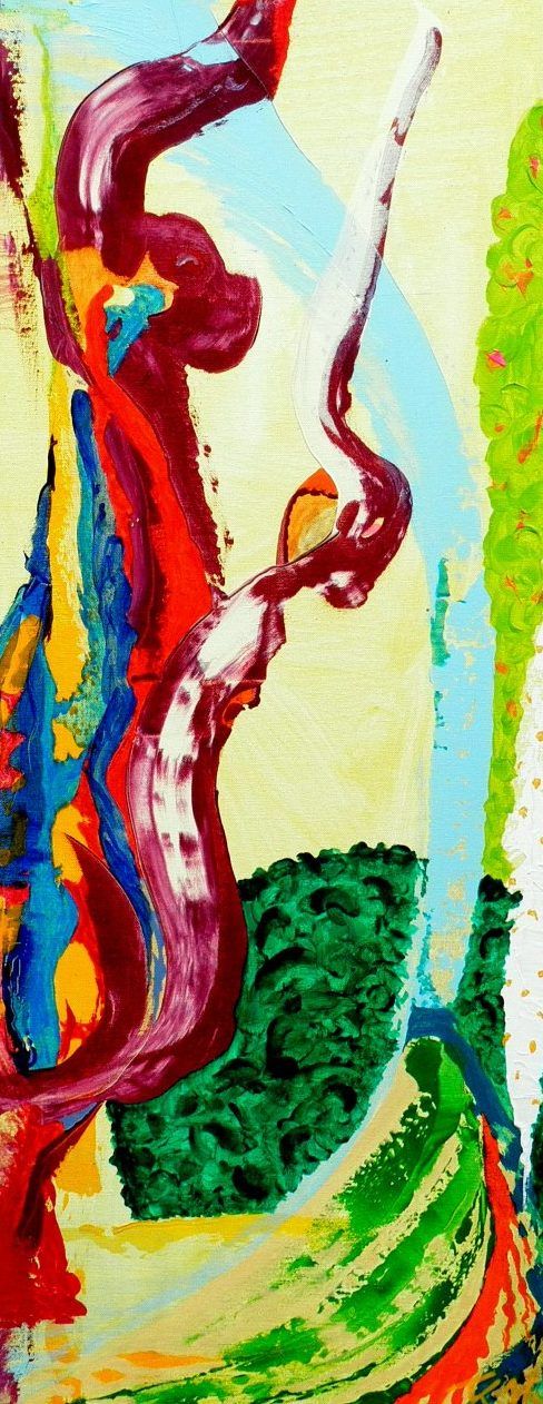 Een globale impressie van het schilderij "Verovering" 40x100cm.