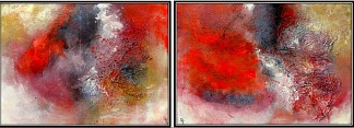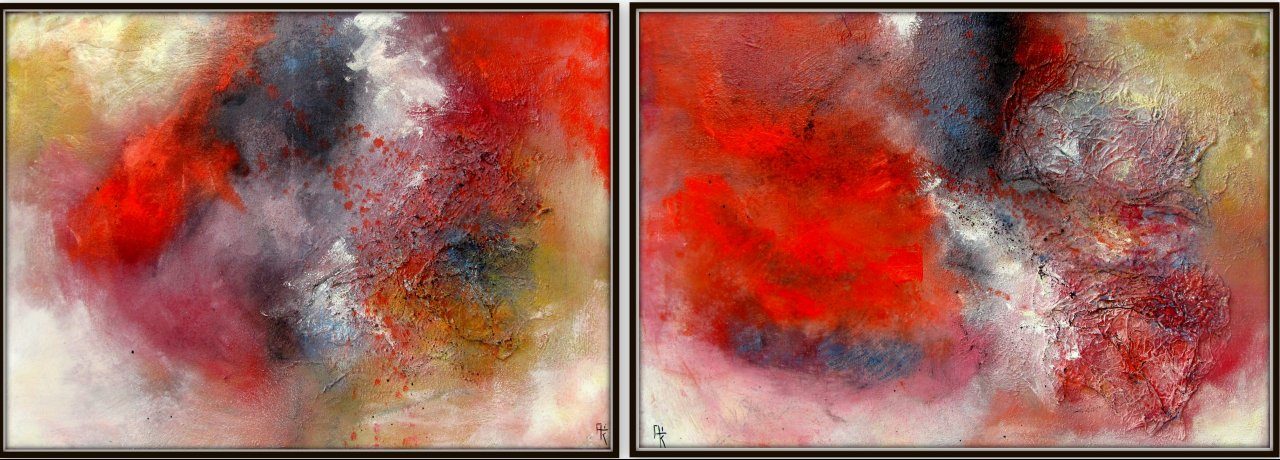 Een globale impressie van het schilderij "Tweeluik For the good times" 148x54cm.