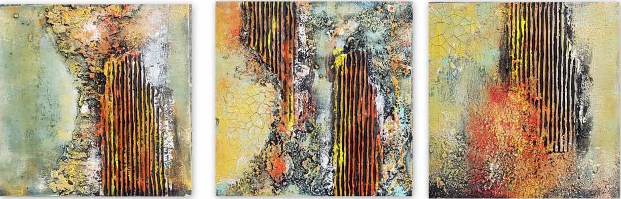 Een globale impressie van het schilderij "Little treasures 3" 85x25cm.
