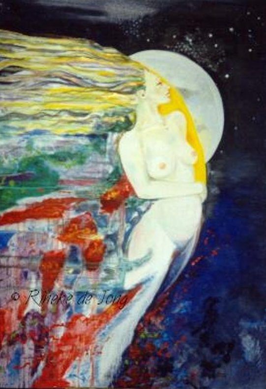 Een globale impressie van het schilderij "Rond de Nacht" 100x120cm.