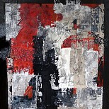 Een globale impressie van het schilderij "Footsteps on the moon" 100x120cm.