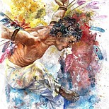 “Ares”, 105×70 cm., gelimiteerde oplage ../25, gesigneerd door de kunstenaar. Certified Art Giclée TM, op museumkwaliteit canvas + UV Coating, opgespannen op 1e kwaliteit frame, met certificaat. (plus handmatige bewerking met goud of bronsverf tegen meerprijs).