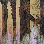 Abstract schilderij uitgevoerd in olieverf en inkt op doek. 160 x 80 cm. Gesigneerd. Prijs op aanvraag.