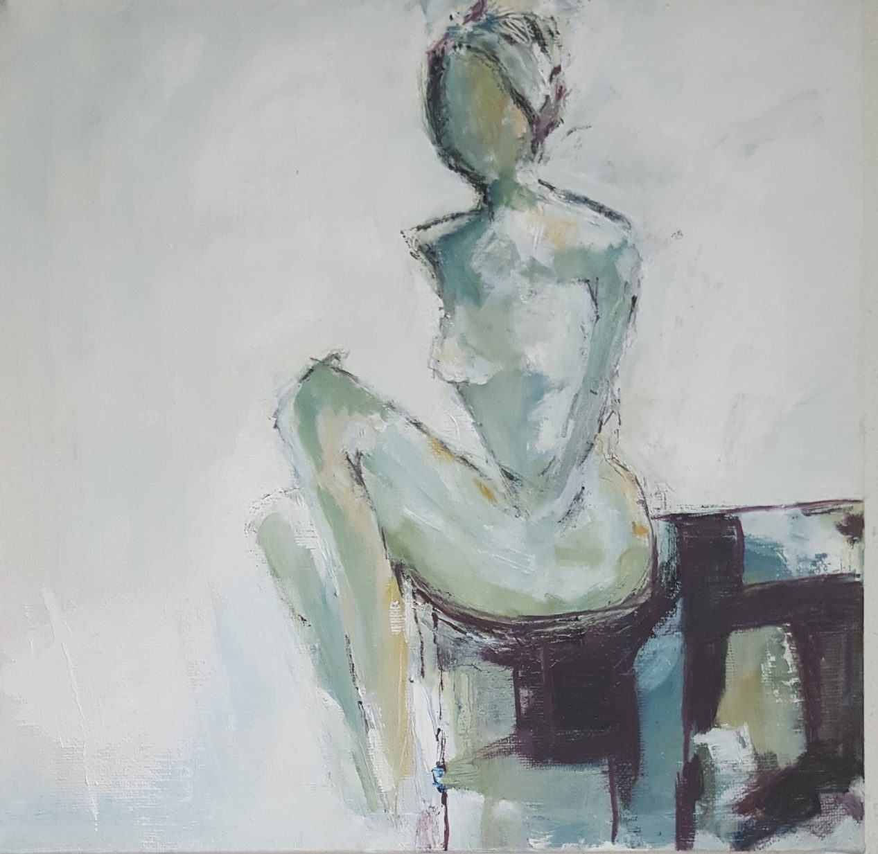 Een globale impressie van het schilderij "Vrouw" 30x30cm.