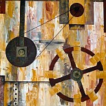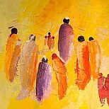 Vulkaaneiland, is geschilderd op zijde, met zijdeverf, is ingelijst en onder glas, 55 cm. x 55 cm. inclusief lijst van zilverkleurig materiaal.