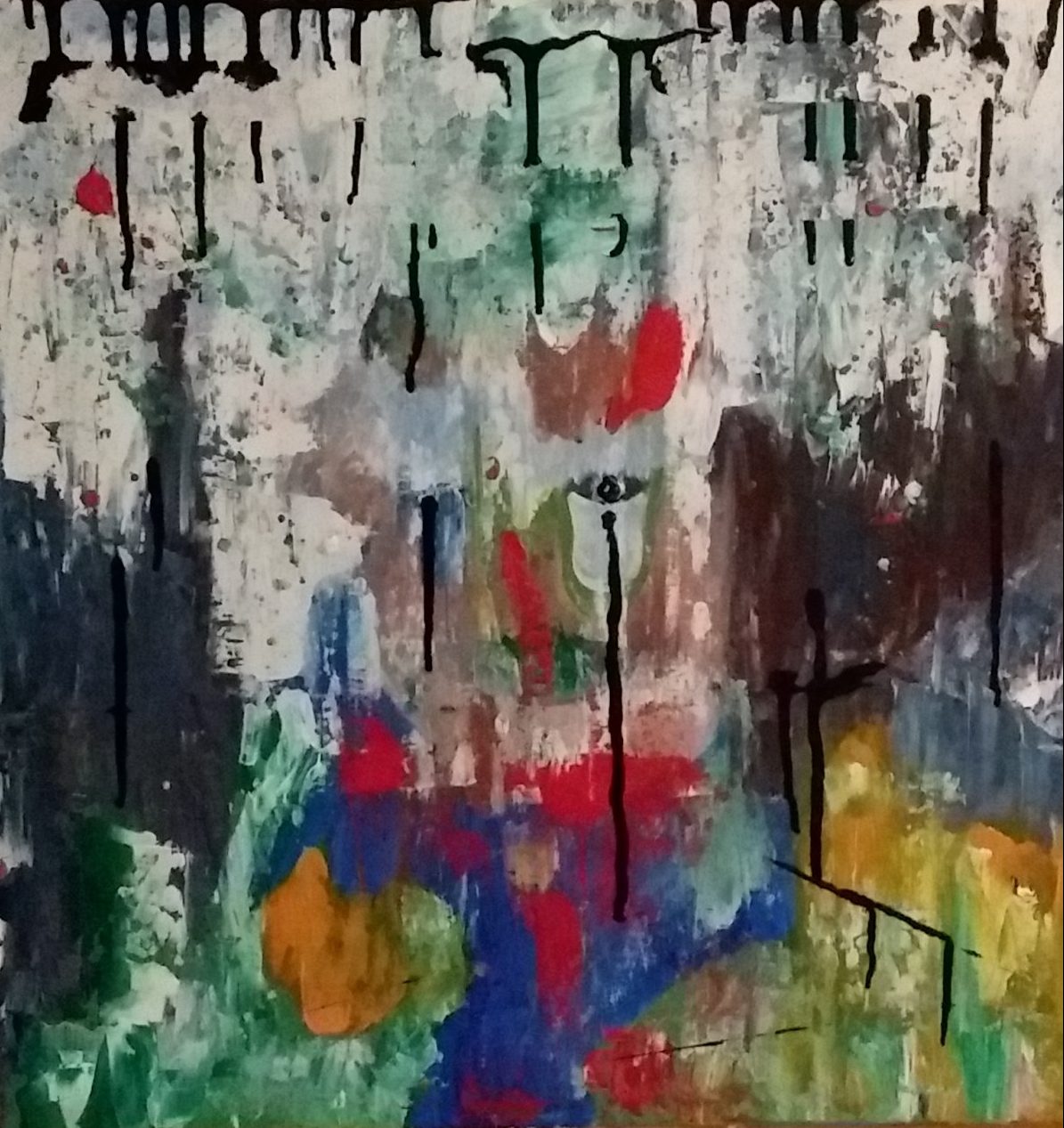 Een globale impressie van het schilderij "Black Tears" 50x50cm.