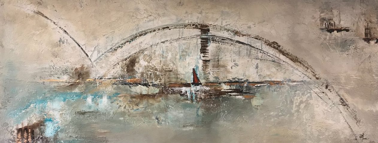 Een globale impressie van het schilderij "Under the surface" 100x40cm.