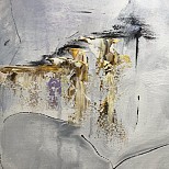Abstract, acryl op linnen, lichte structuur, paletmes, kwast, acrylverf-Amsterdam