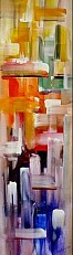 Een globale impressie van het schilderij "Regenboog" 30x100cm.