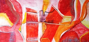 Een globale impressie van het schilderij "Intwominds" 140x70cm.