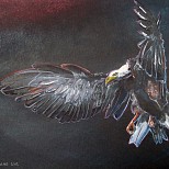 Olieverf op doek, ingelijst in een houten zwart gelakte lijst