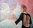 Een globale impressie van het schilderij "Vrouw en de dood in een spiegel" 50x60cm.