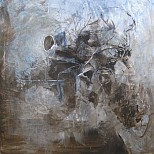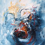 Een globale impressie van het schilderij "Zonder titel" 80x80cm.