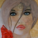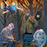 Een globale impressie van het schilderij "Avondzon aan de plas in Almere" 70x60cm.