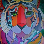 Gemengde techniek met acryl, op paneel, in houten baklijsy